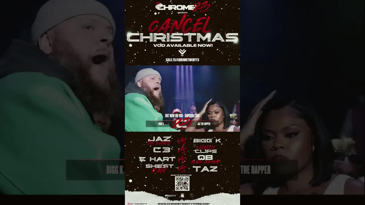🎄🎄 Jaz The Rapper vs. Bigg K 🎄🎄 🎄🎄 Jaz The Rapper vs. Bigg K 🎄🎄 0:01:00 / 2023 / TV-MA #Chrome23 #CancelChristmas #JazVsBiggK Order the VOD HERE: https://www.rapgrid.com/cancelchristmas Genres Entertainment More from Entertainment Recommended