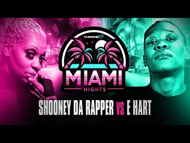 Shooney Da Rapper vs. E Hart took place at #MiamiNights this is a battle that has been anticipated for years! Did E Hart take another opponent down on the Chrome stage? Or was Shooney Da Rapper too much after her recent hot streak? Find out NOW! Who took this battle? Let us KNOW!